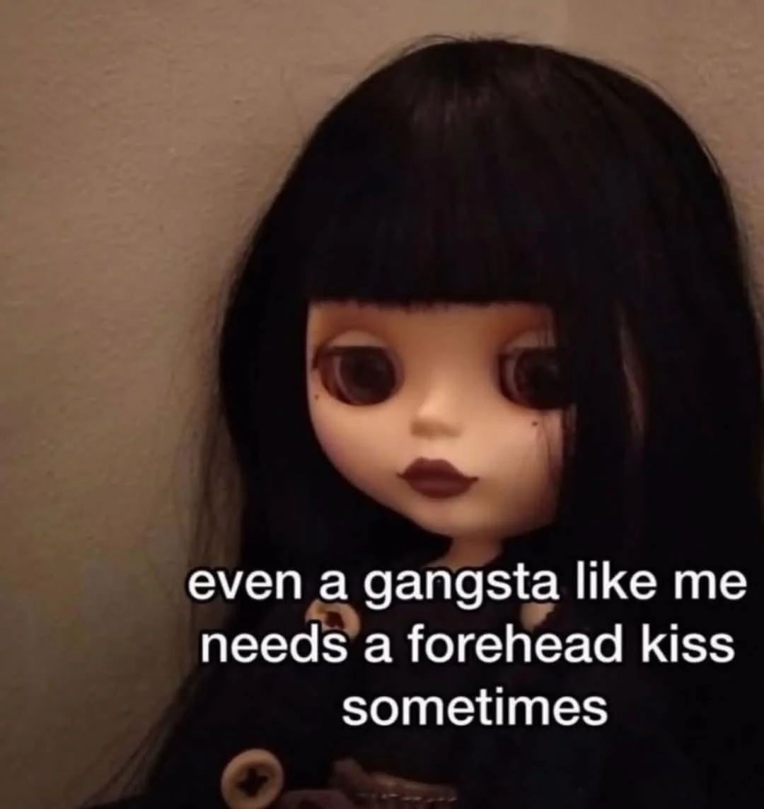 Apraksts: "even a gangsta like me needs a forehead kiss sometimes"