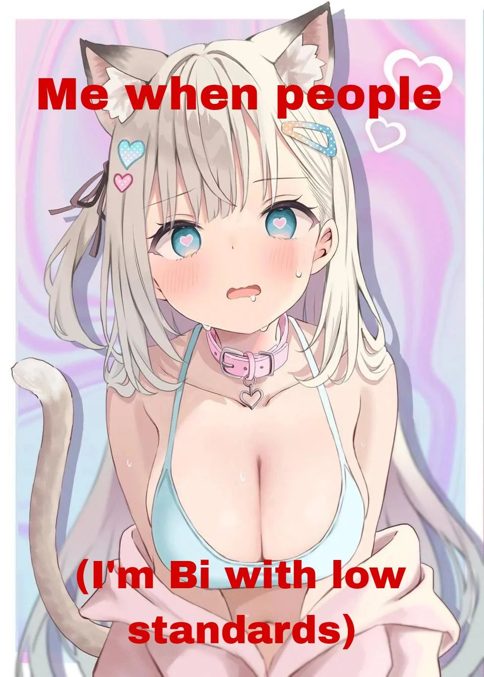 Apraksts: "Me when people (I'm Bi with low standards)"