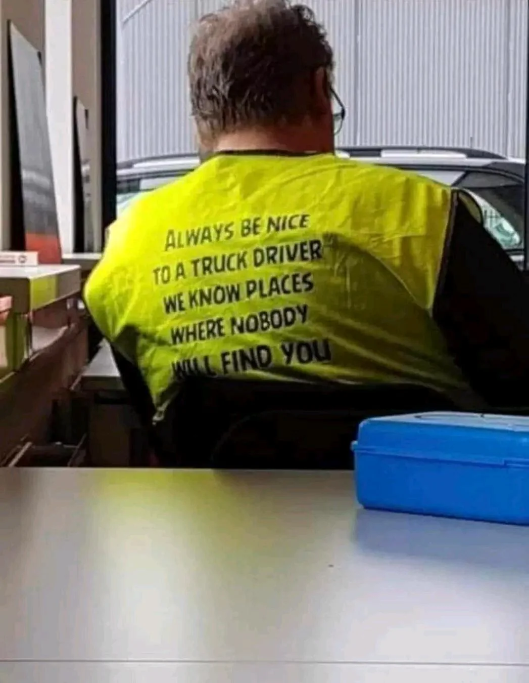 Apraksts: "Always be nice to a truck driver We know places where nobody will find you"