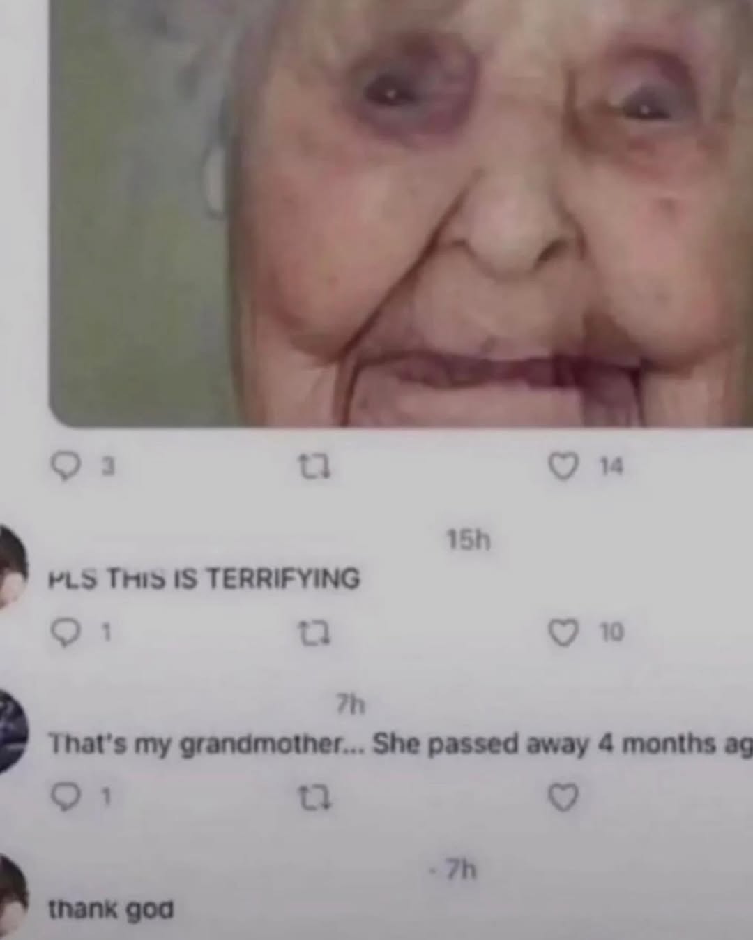 Apraksts: "PLS THIS IS TERRIFYING That's my grandmother... She passed away 4 months ago thank god"