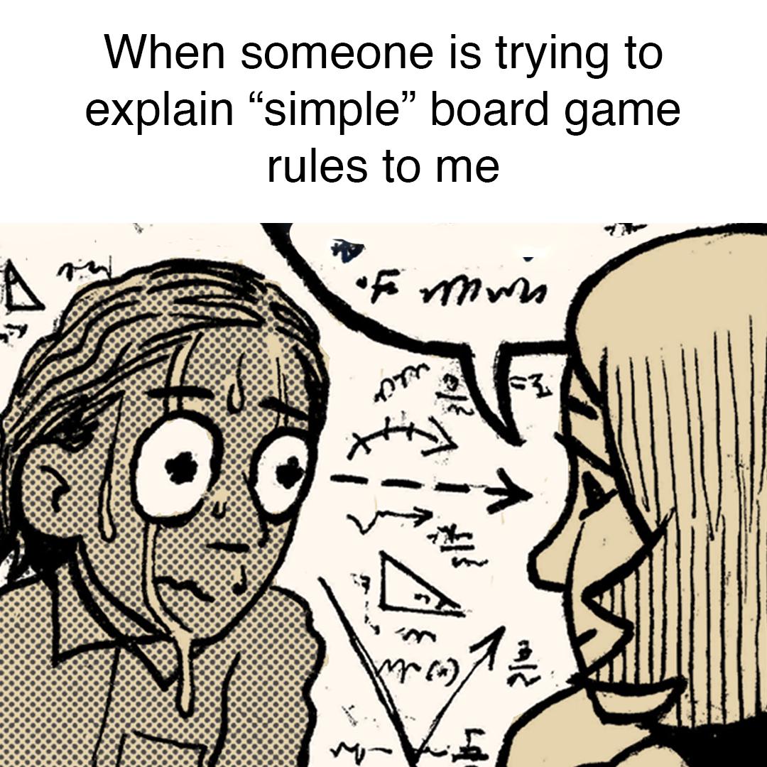Apraksts: "When someone is trying to explain "simple" board game rules to me"