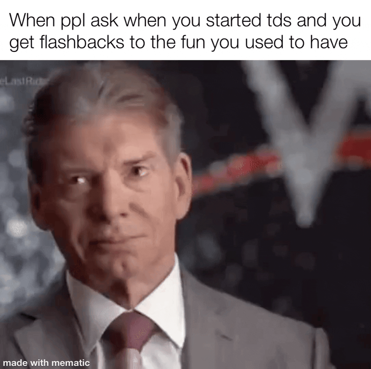 Apraksts: "When ppl ask when you started tds and you get flashbacks to the fun you used to have"