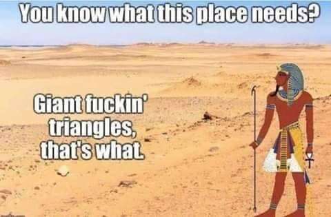 Apraksts: "You know what this place needs? Giant fuckin' triangles, that's what."