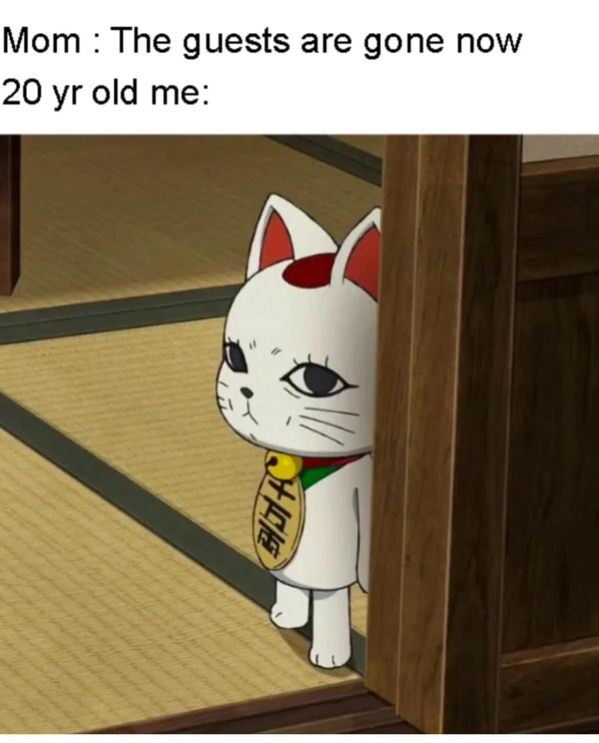 Apraksts: "Mom : The guests are gone now 20 yr old me:"