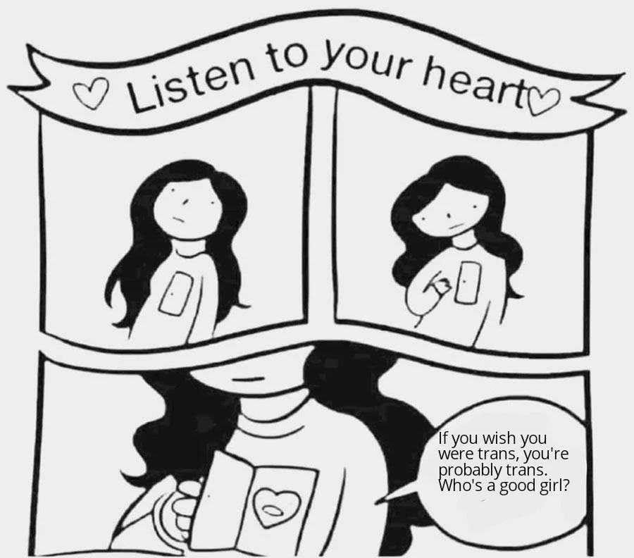 Apraksts: "Listen to your heart If you wish you were trans, you're probably trans. Who's a good girl?"