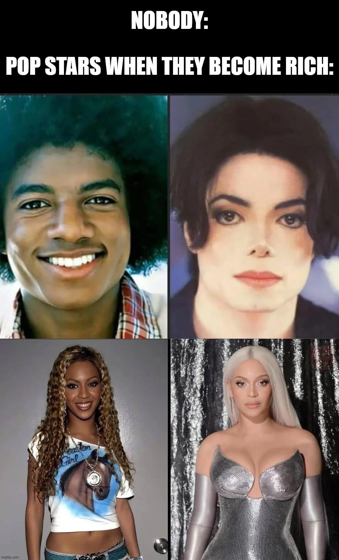 Apraksts: "Nobody: Pop stars when they become rich:"