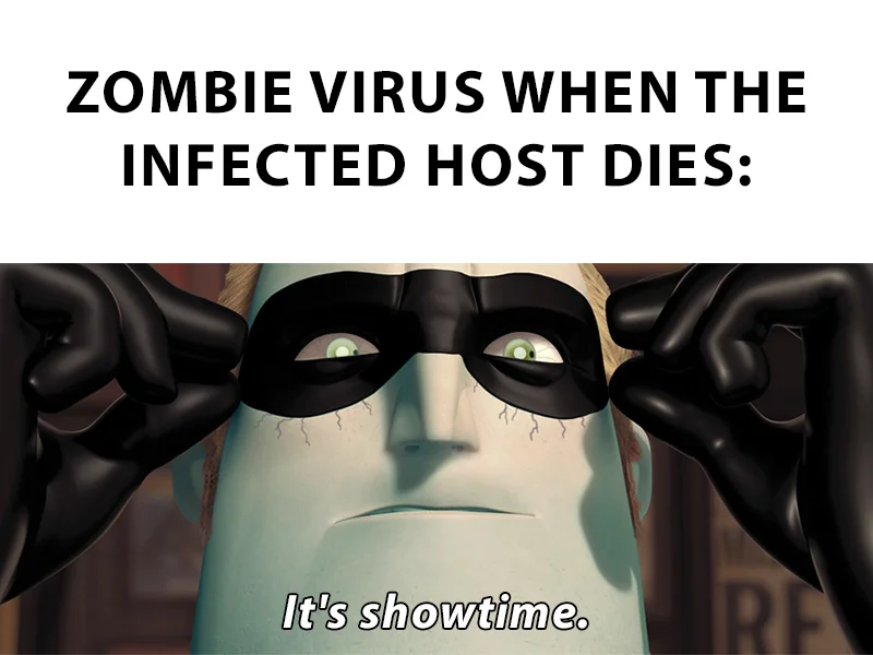 Apraksts: "Zombie virus when the infected host dies: It's showtime."