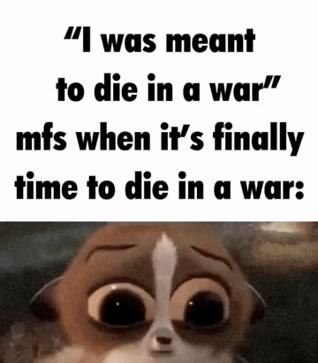 Apraksts: ""I was meant to die in a war" mfs when it's finally time to die in a war:"