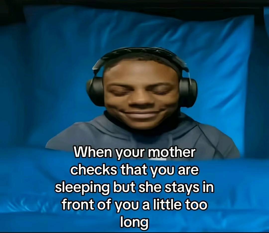 Apraksts: "When your mother checks that you are sleeping but she stays in front of you a little too long"