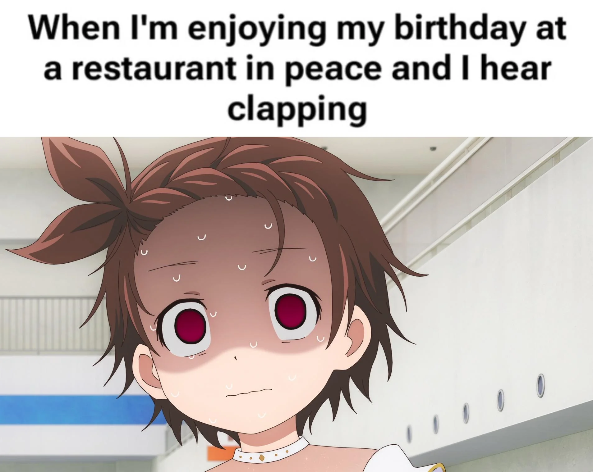 Apraksts: "When I'm enjoying my birthday at a restaurant in peace and I hear clapping"