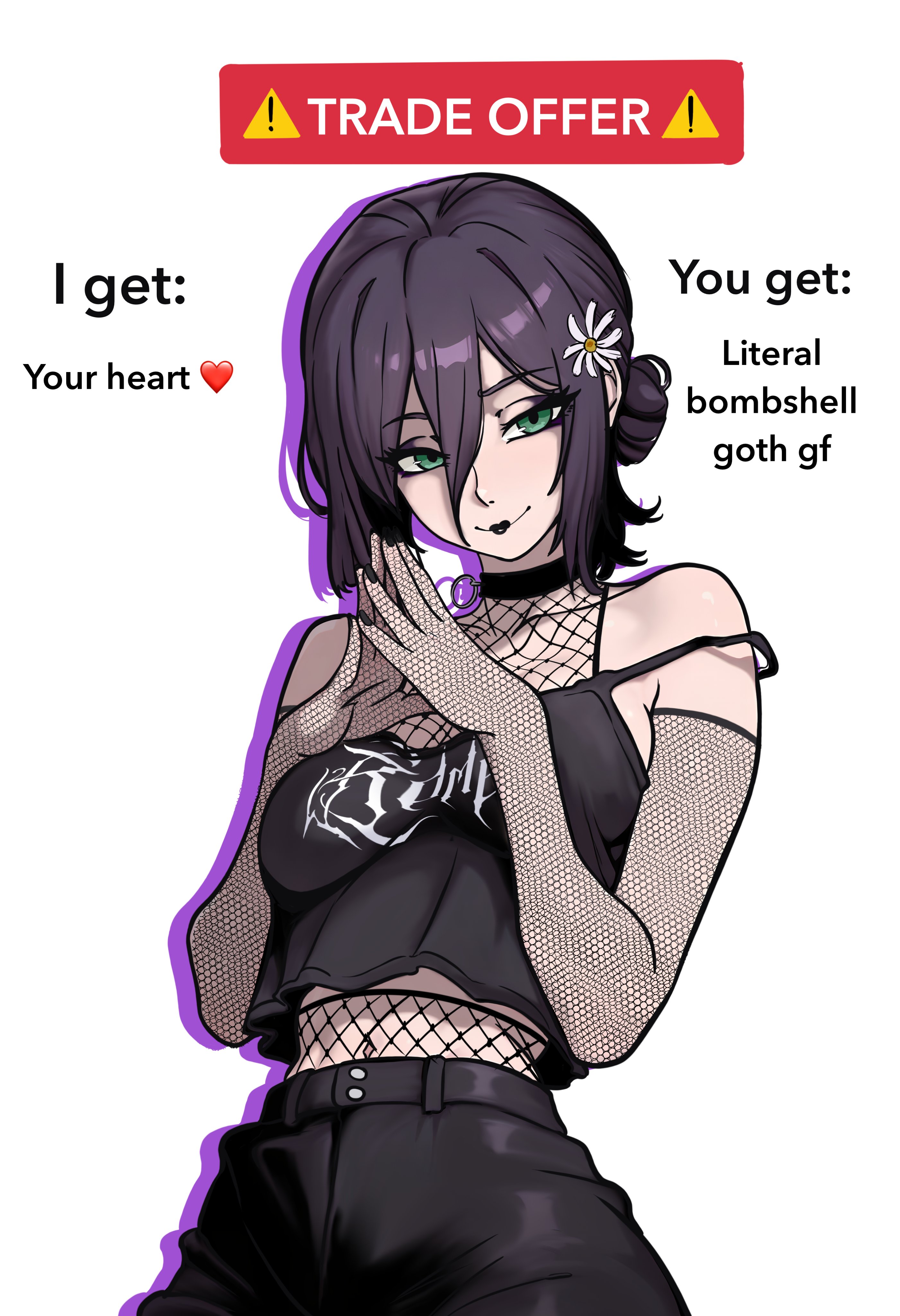 Apraksts: "I get - your heart ❤️ You get - Literal bombshell goth gf"