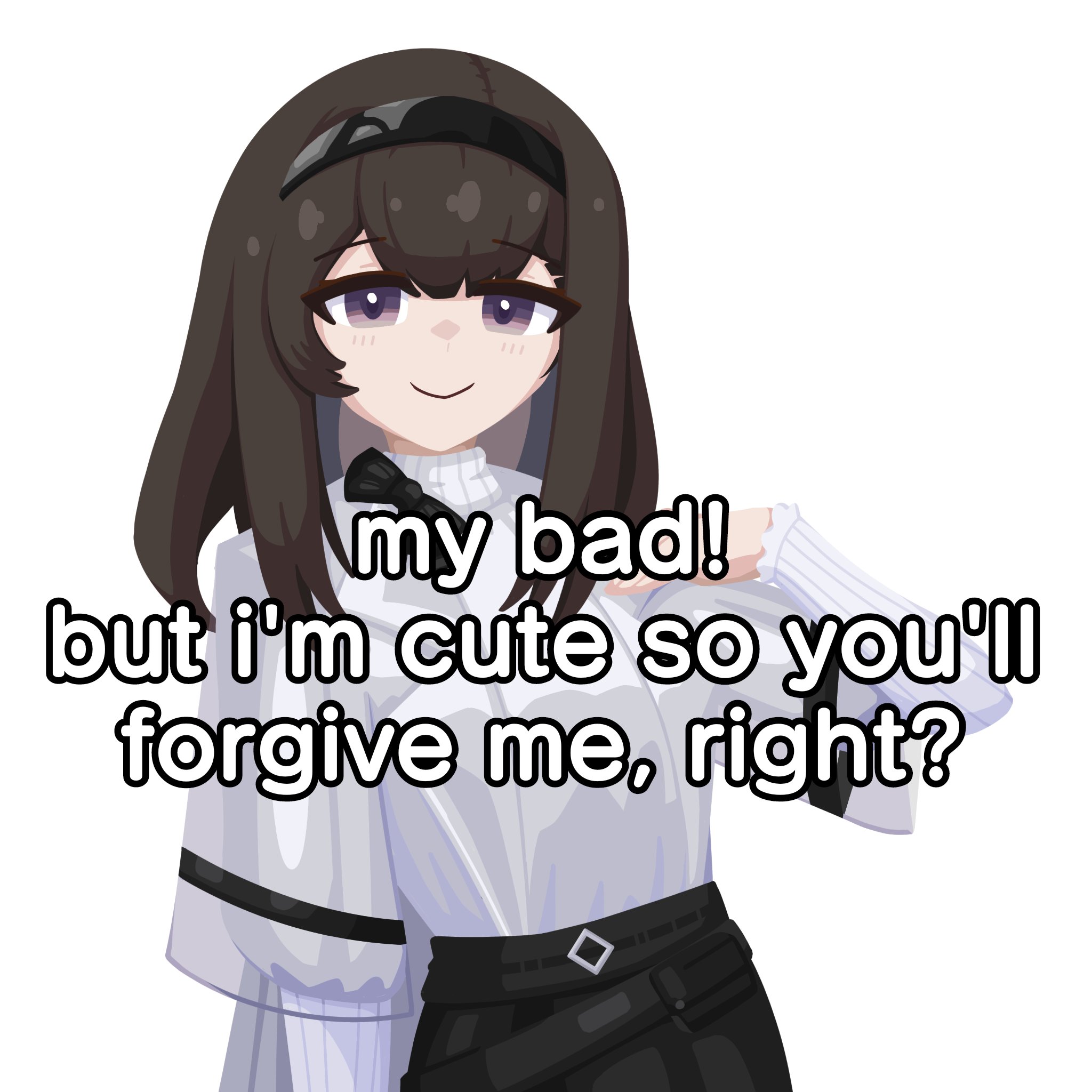 Apraksts: "my bad! but i'm cute so you'll forgive me, right?"