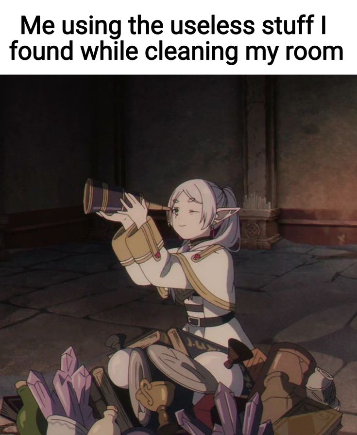 Apraksts: "Me using the useless stuff I found while cleaning my room"