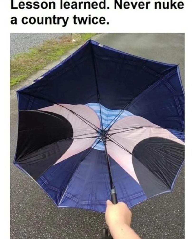 Apraksts: "Lesson learned. Never nuke a country twice."